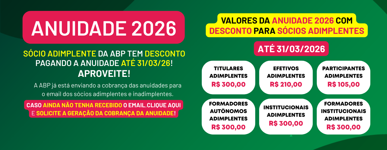 - Desconto em eventos promovidos pela ABP e Capítulos.